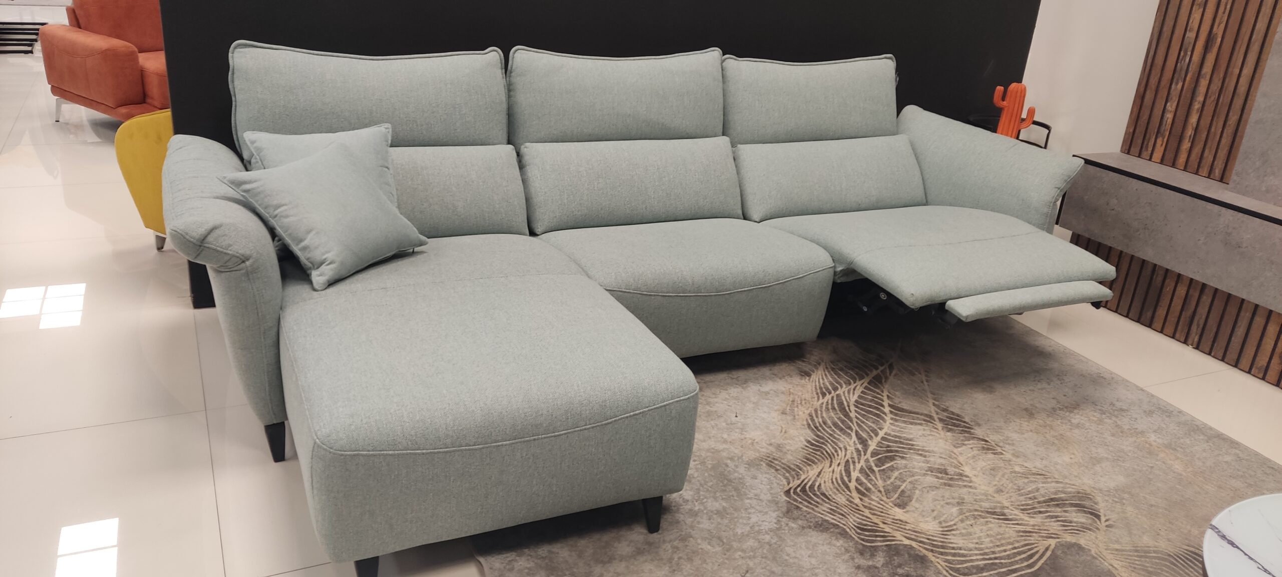 מערכת ישיבה פינתית כולל רקלינר חשמלית בבד רחיץ באספקה מיידית במידה 290*160 תוצרת צרפת אספקה 10 יום